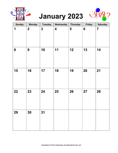 Calendar Description: 2023 calendar in portrait orientation. This calendar is blank; it does not include holidays. This calendar contains all 12 months, January through December. The calendar includes graphics themed for each month.