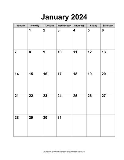 Calendar Description: 2024 calendar in portrait orientation. This calendar is blank; it does not include holidays. This calendar contains all 12 months, January through December.