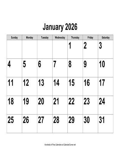 You can download either a PDF or Microsoft Word version of the "2026 Large-Number Calendar, Landscape" calendar absolutely free. What would you like to do?