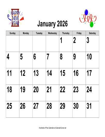 You can download either a PDF or Microsoft Word version of the "2026 Large-Number Holiday Graphics Calendar, Landscape" calendar absolutely free. What would you like to do?